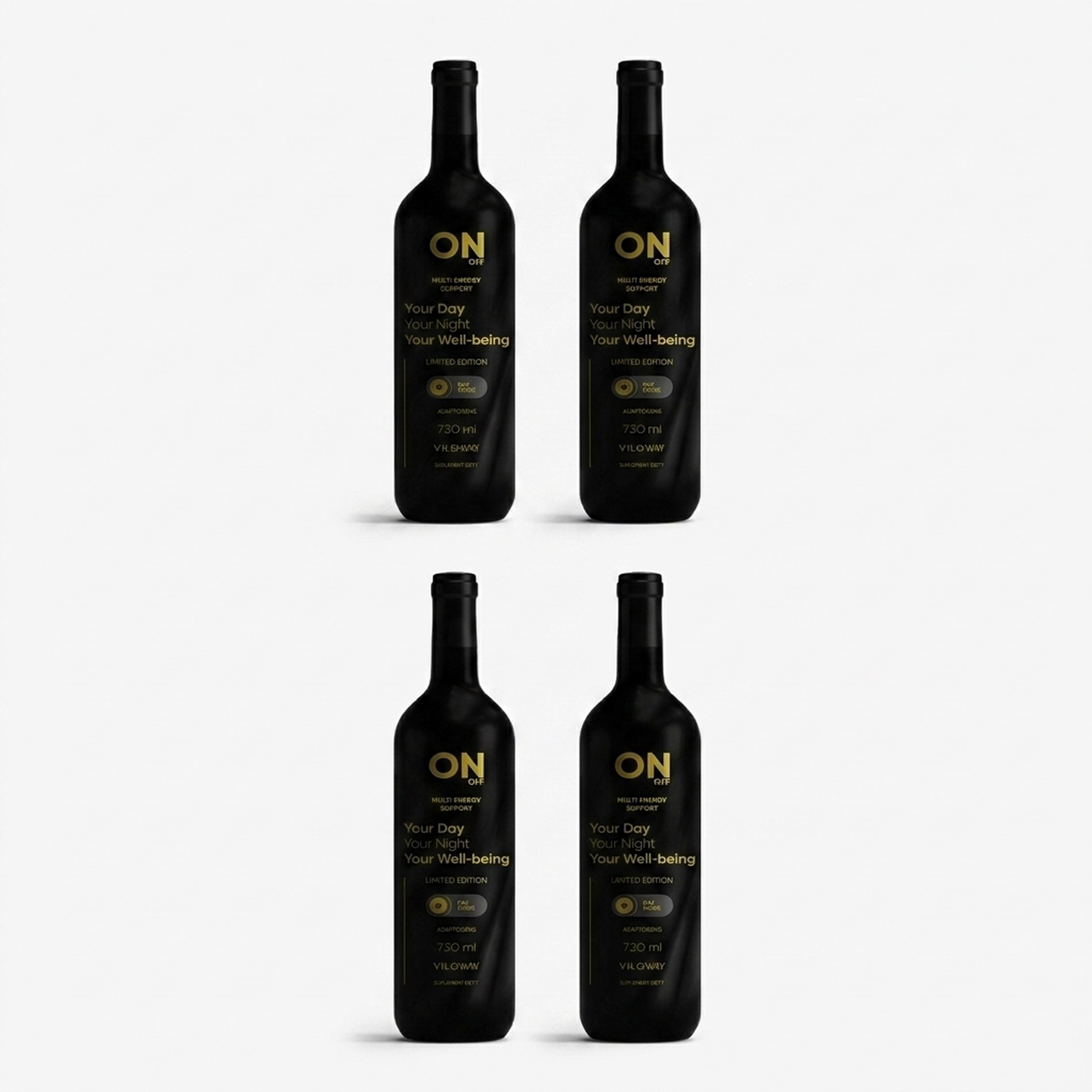 Multi ON 4-Pack is not a tasting. It is a full 2-month botanical supplementation cycle - the time your body needs for plant adaptogens (Ashwagandha, Panax ginseng) to settle into a homeostatic rhythm, and for natural stimulants (guarana, Assam tea, pepper fruit) to start delivering stable energy instead of one-off kicks.