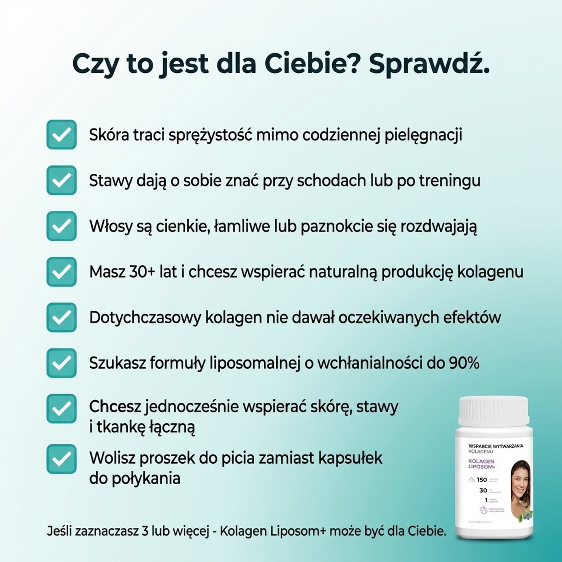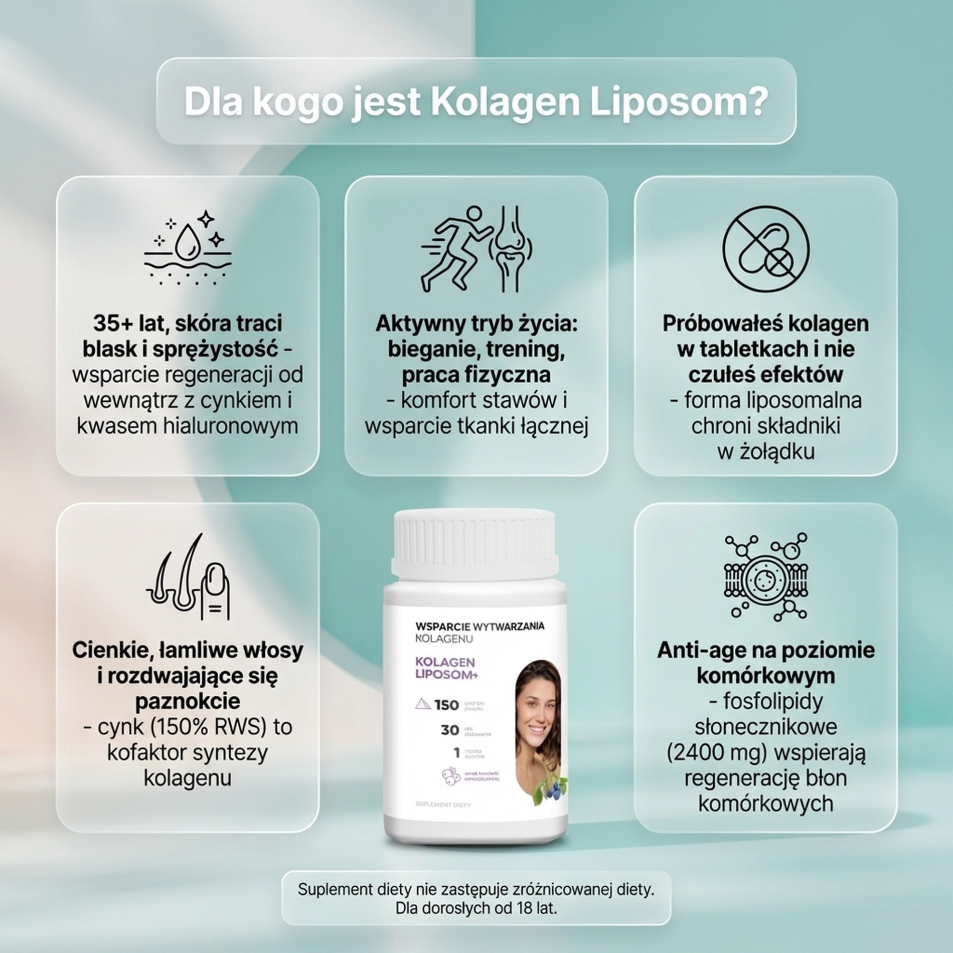 This multi-ingredient composition, combined with a natural flavor, makes Liposomal Collagen+ an effective support for those seeking comprehensive care for youthful appearance and vitality. While this product does not replace medical treatment, it can be a valuable dietary supplement within a healthy lifestyle.