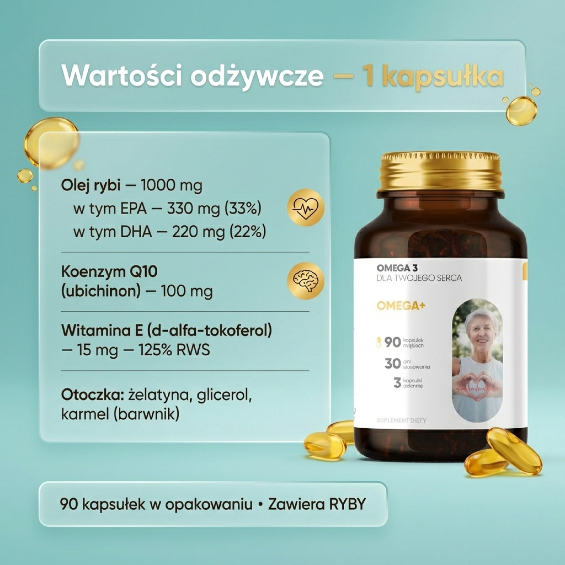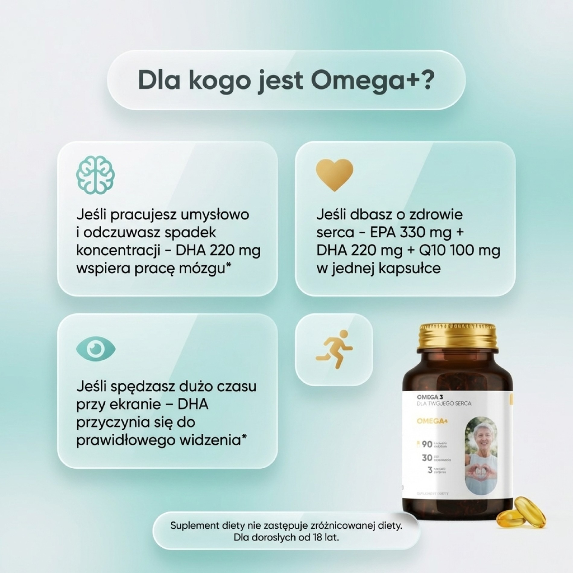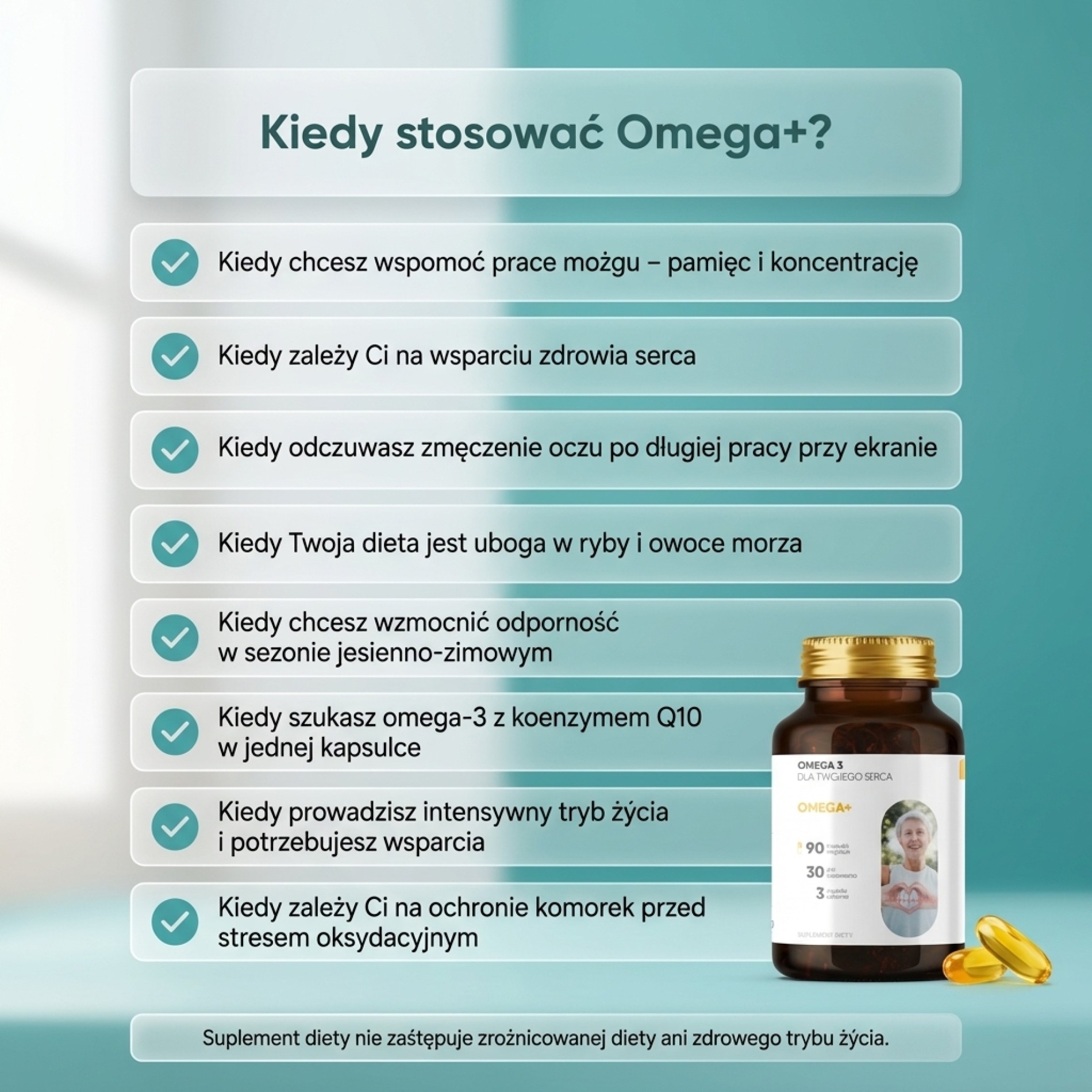 It’s worth noting that modern diets are often low in omega-3 fatty acids, especially among individuals who consume little to no fatty fish. Supplementation can be a valuable addition to the diet - particularly for individuals over the age of 40, when natural Coenzyme Q10 synthesis begins to decline.