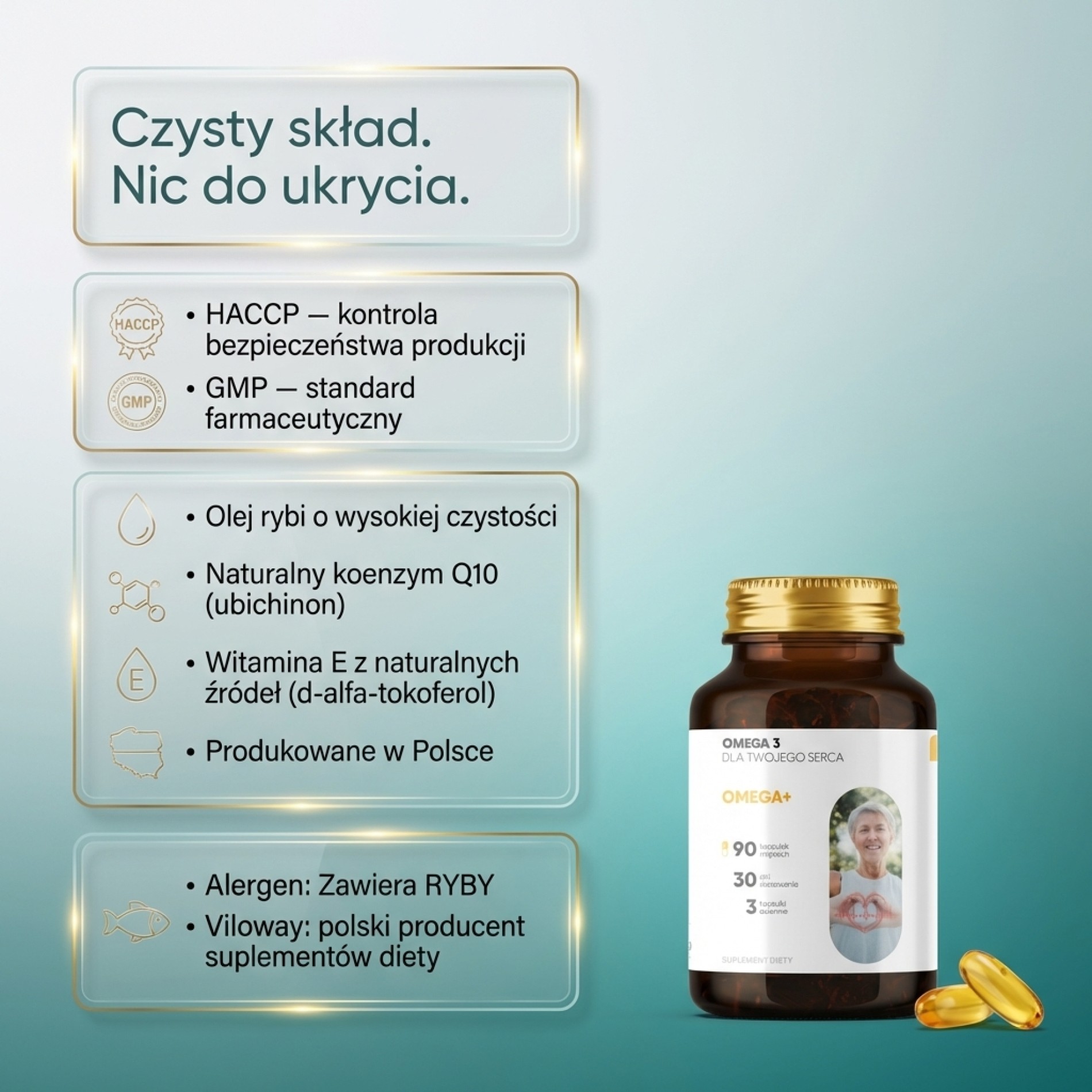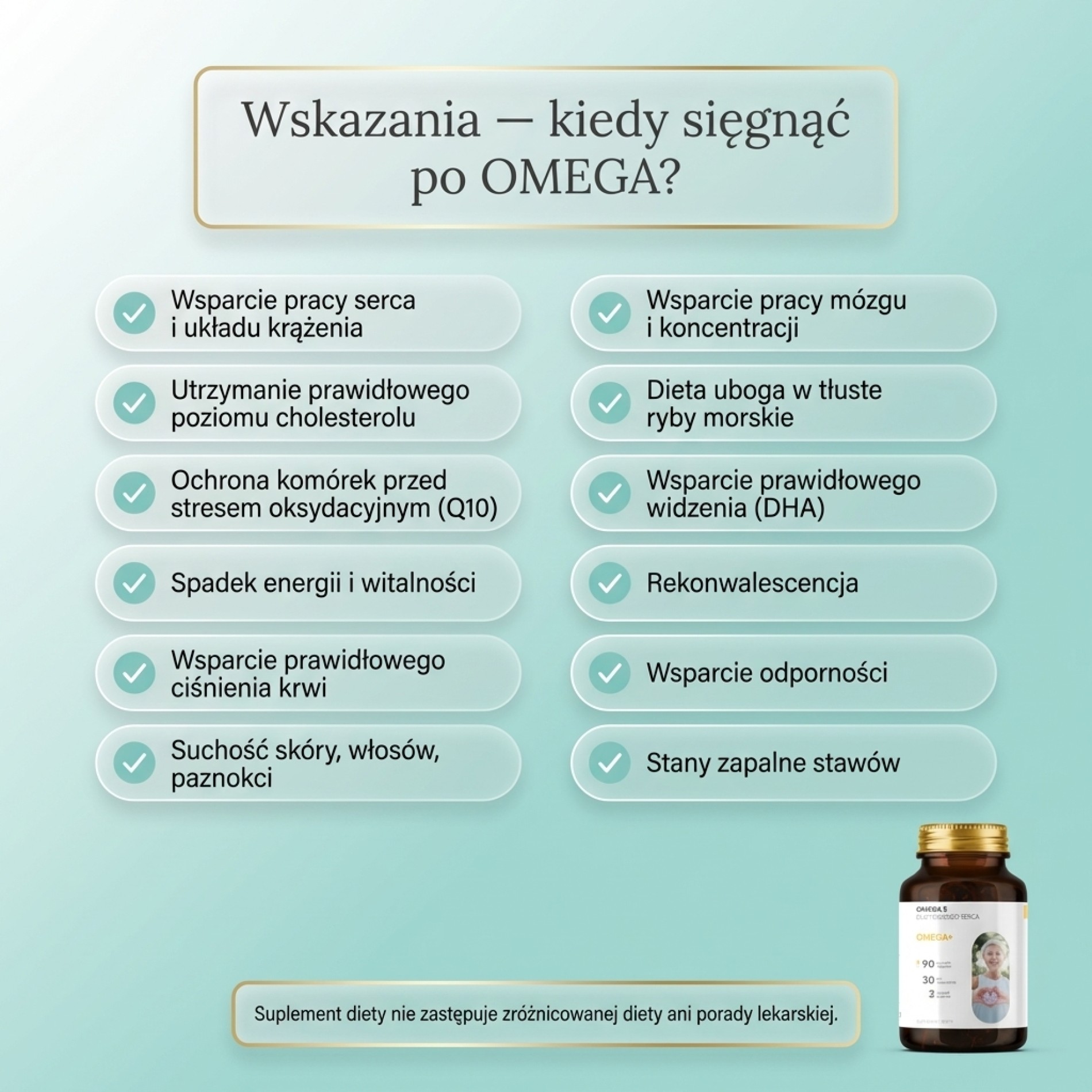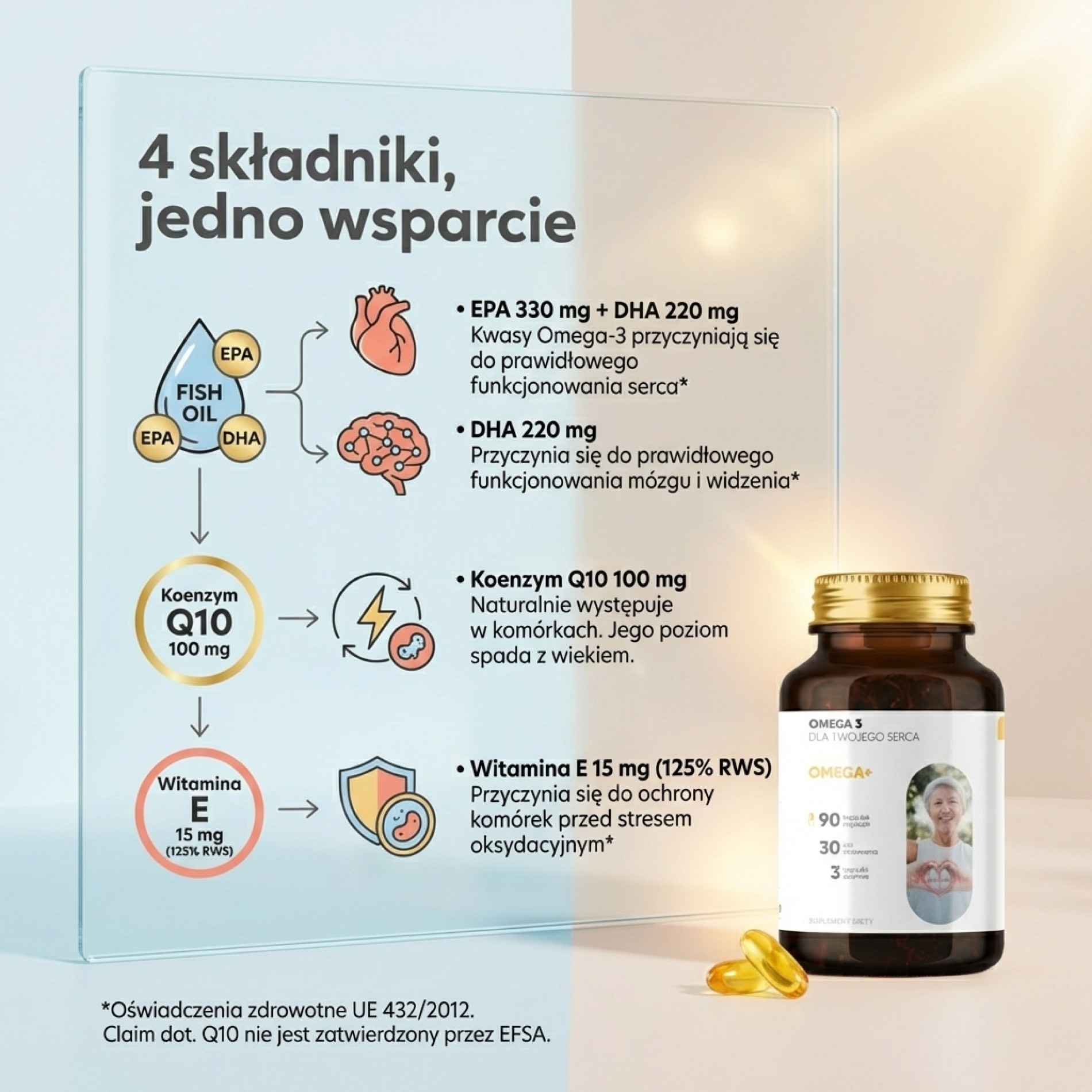 It’s worth noting that modern diets are often low in omega-3 fatty acids, especially among individuals who consume little to no fatty fish. Supplementation can be a valuable addition to the diet - particularly for individuals over the age of 40, when natural Coenzyme Q10 synthesis begins to decline.