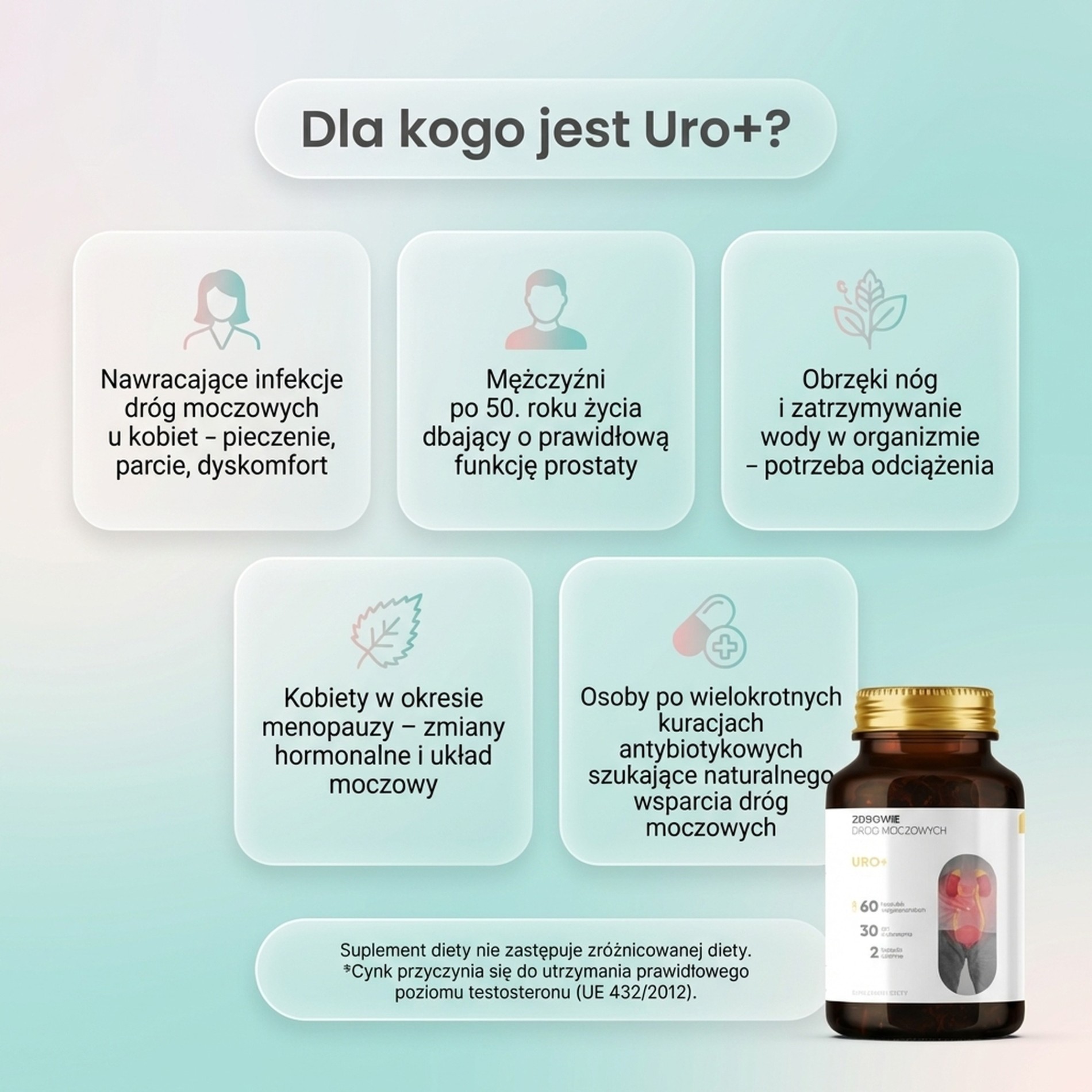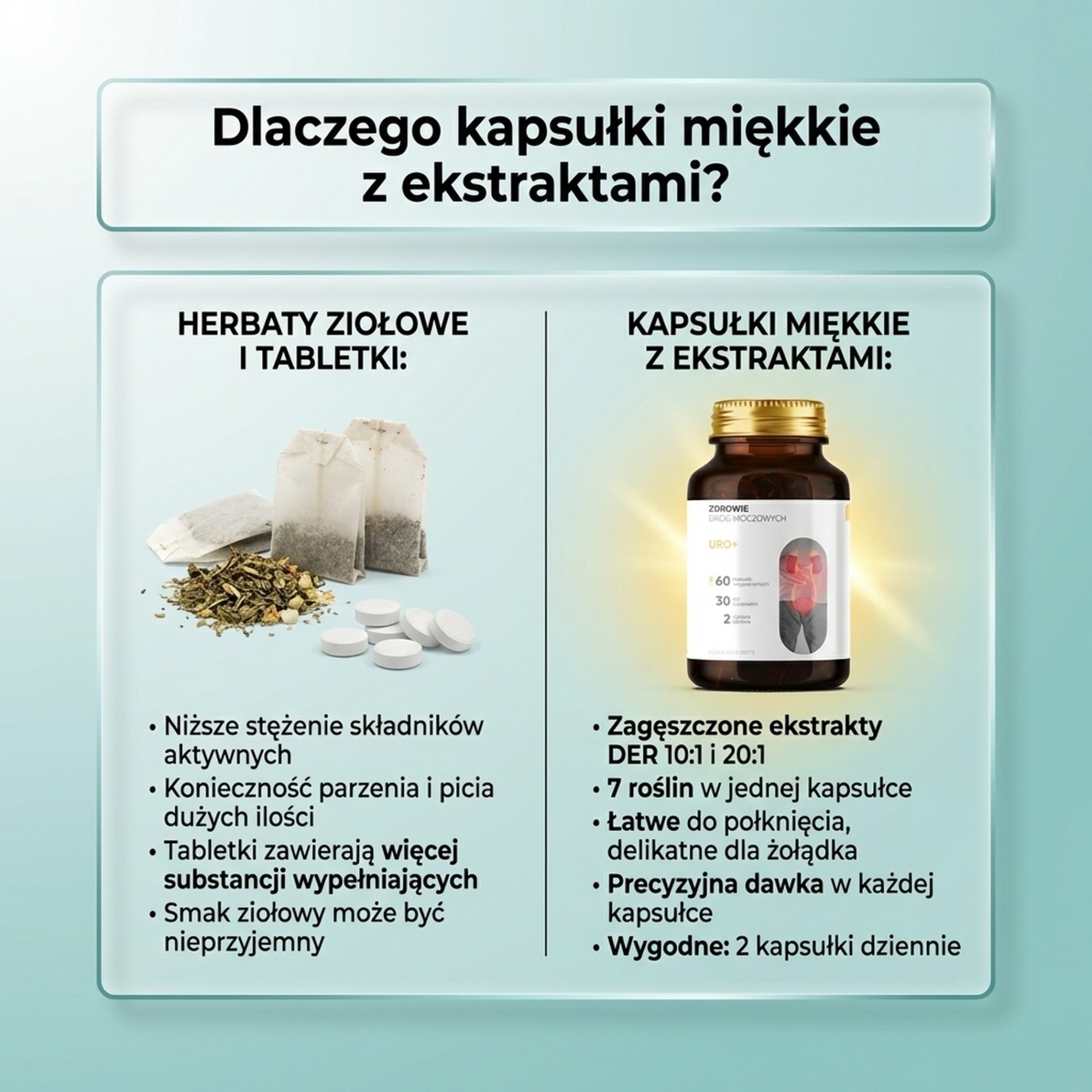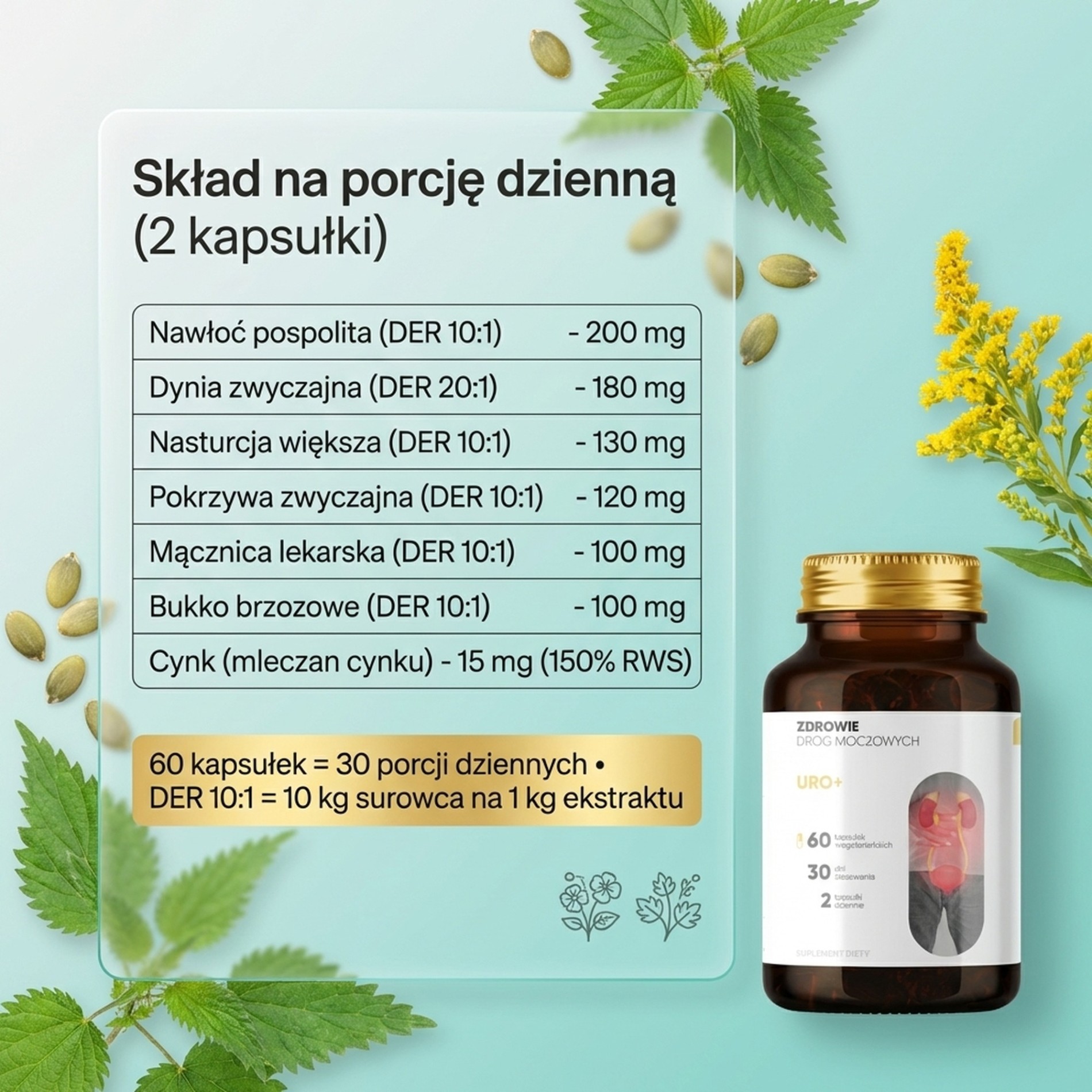 Suplementacja ziołowa stanowi w takich okolicznościach doskonałe uzupełnienie wsparcia naszego zdrowia. Stosowanie ekstraktów ziołowych znacząco zwiększa regenerację i wydolność układu moczowego. Poprawa funkcji nerek to nie tylko lepsza detoksykacja organizmu, ale też poprawa ciśnienia tętniczego krwi i wsparcie produkcji wyższej jakości czerwonych ciałek krwi. Stosowanie ziół jest ważne dla kobiet, aby chronić je przed wstępującymi, nawrotowymi zakażeniami pęcherza moczowego, natomiast stosowanie ziół u mężczyzn jest ważne ze względu na pozytywny wpływ substancji aktywnych na gruczoł krokowy (prostatę).