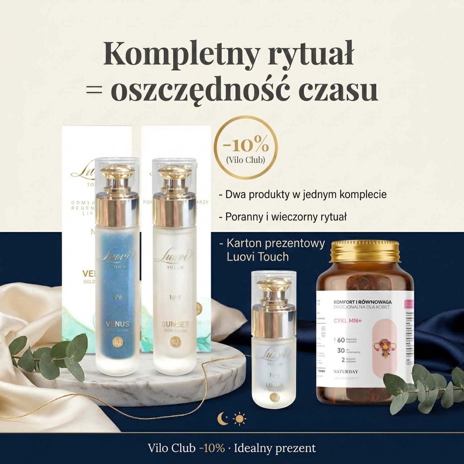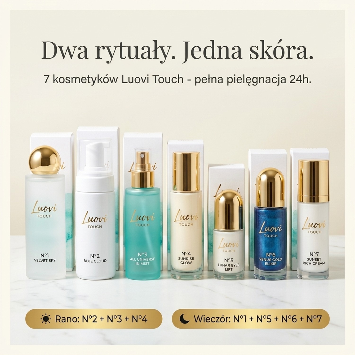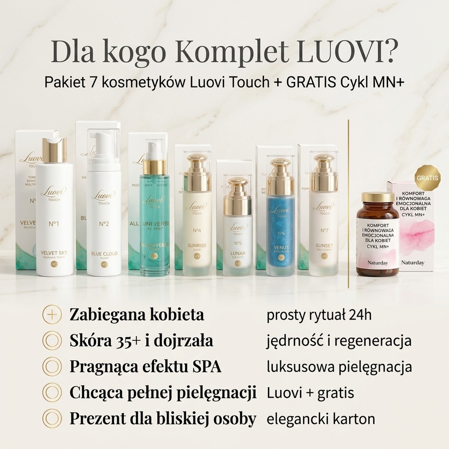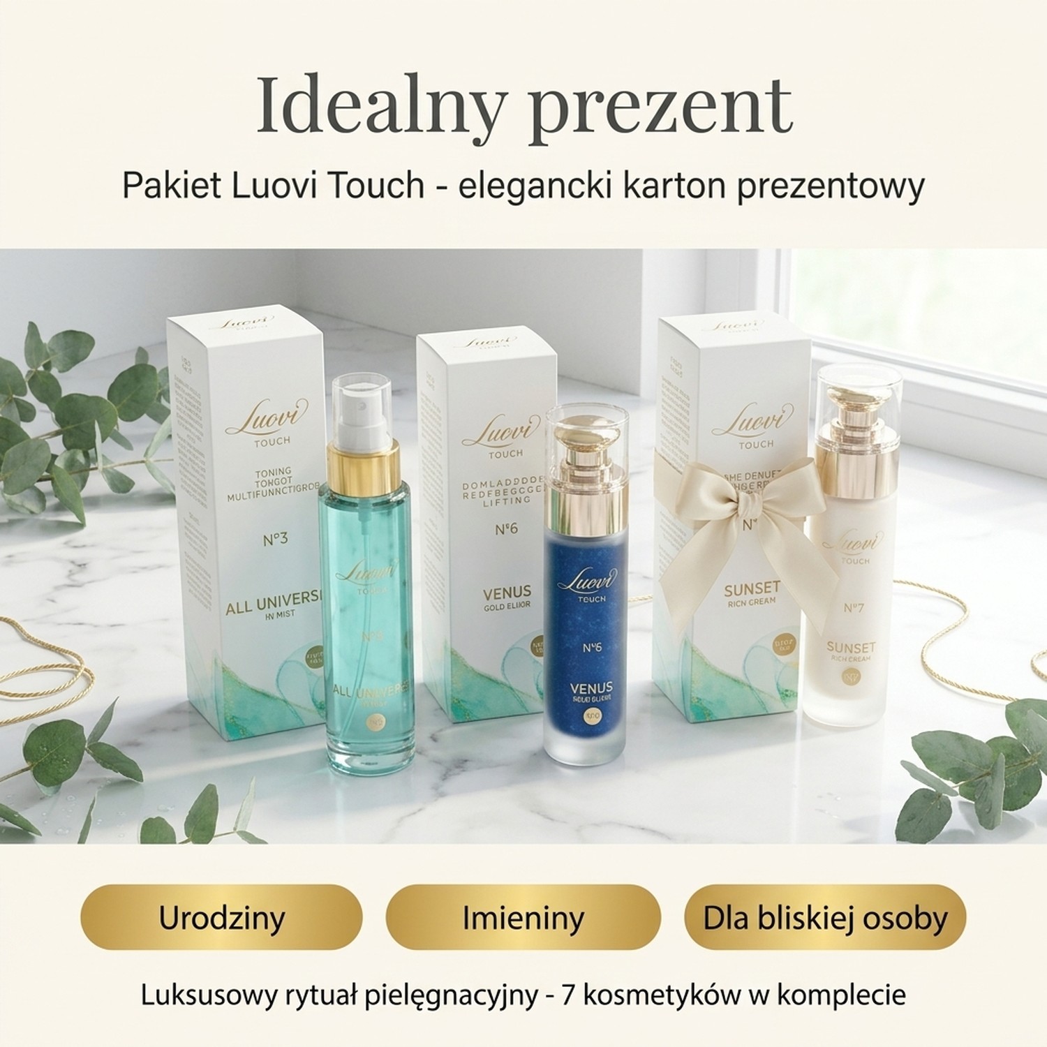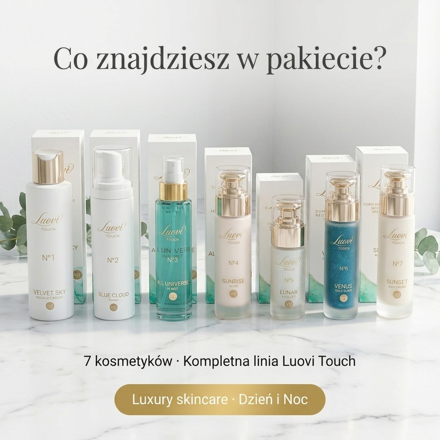 Polecam Pakiet LUOVI Touch Komplet kobietom po 25 roku życia jako najskuteczniejszą alternatywę dla medycyny estetycznej. Ten system eliminuje potrzebę poszukiwania pojedynczych produktów, oferując kompletny rytuał piękna oparty na najnowszych osiągnięciach kosmetologii. Sama stosuję ten kompletny system i mogę potwierdzić, że holistyczne podejście przynosi efekty niemożliwe do osiągnięcia przy użyciu tradycyjnej pielęgnacji - to prawdziwy wehikuł czasu zamknięty w siedmiu produktach.