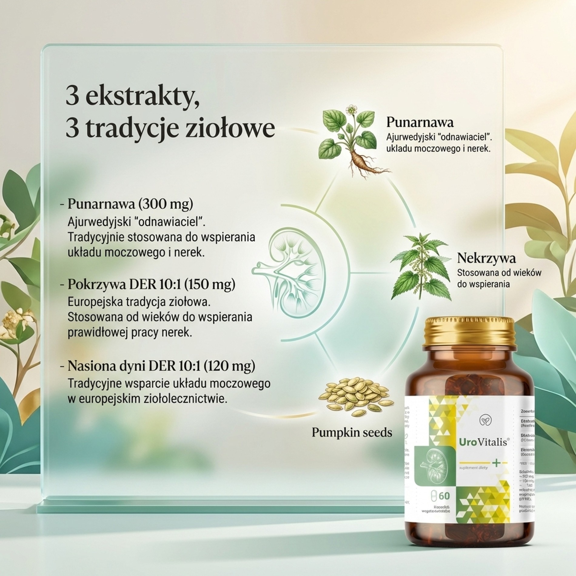 Ta trójskładnikowa formuła reprezentuje holistyczne podejście do wsparcia układu moczowego, łącząc ayurwedyjską tradycję z europejskim ziołolecznictwem w postaci wysokiej jakości ekstraktów.