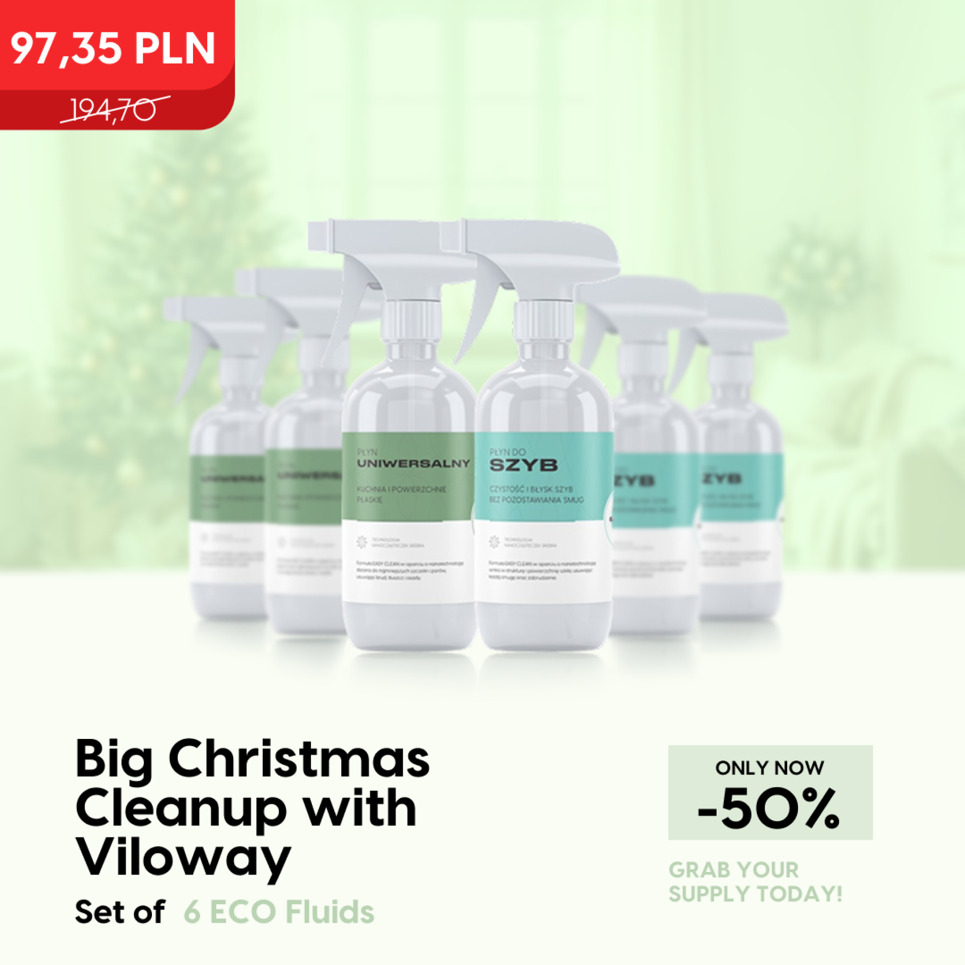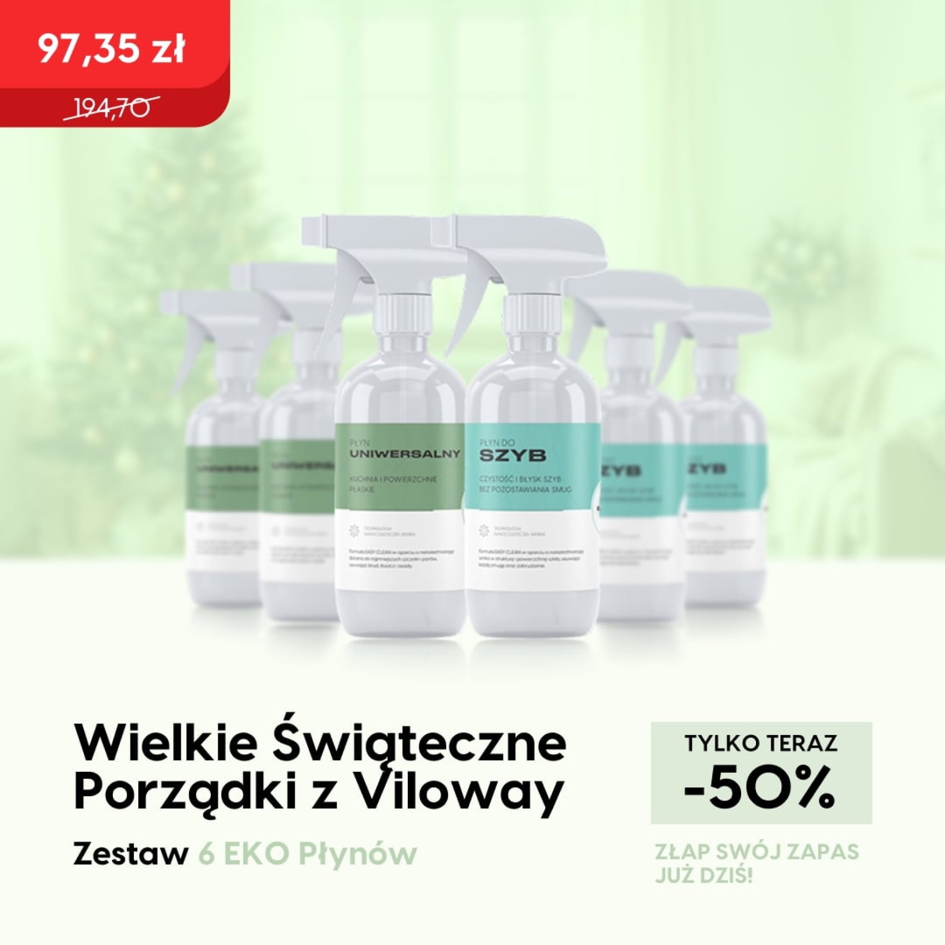 Wielkie Świąteczne Porządki z Viloway to kompletny zestaw do przygotowania domu na magiczny czas świąt. W pakiecie znajdziesz dwa profesjonalne produkty czyszczące, które zamienią sprzątanie w przyjemność, a Twój dom - w oazę czystości i świeżości.