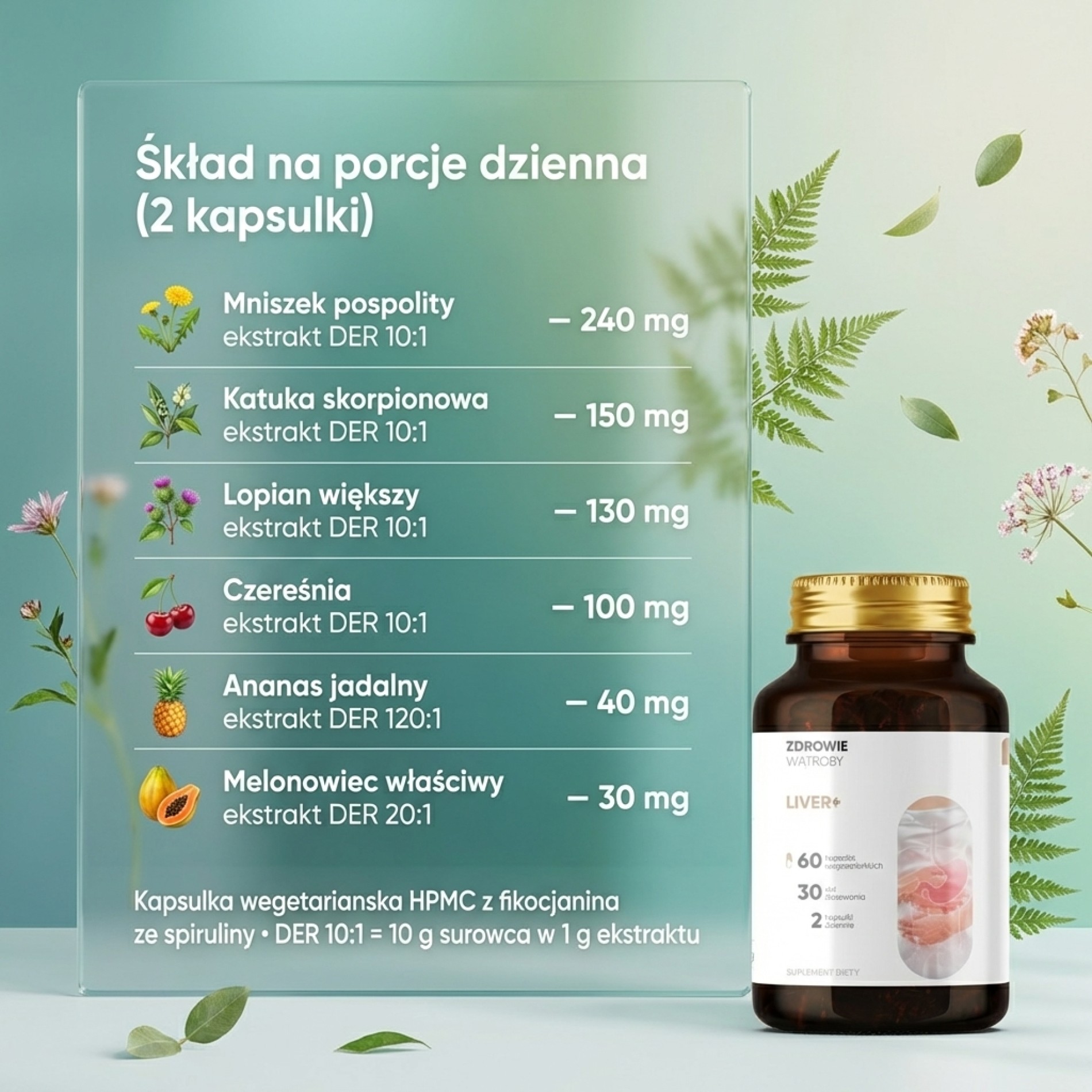W ostatnich latach można zauważyć zwiększoną potrzebę walki o detoksykację organizmu. Zatrucie środowiska i zła jakość pokarmów to główny problem, z którym przyszło nam walczyć. Aby sprostać najwyższym wymaganiom naszych odbiorców stworzyliśmy unikatową mieszankę ekstraktów roslinnych, której zadaniem jest wsparcie pracy wątroby i układu pokarmowego w walce o detoksykację organizmu.