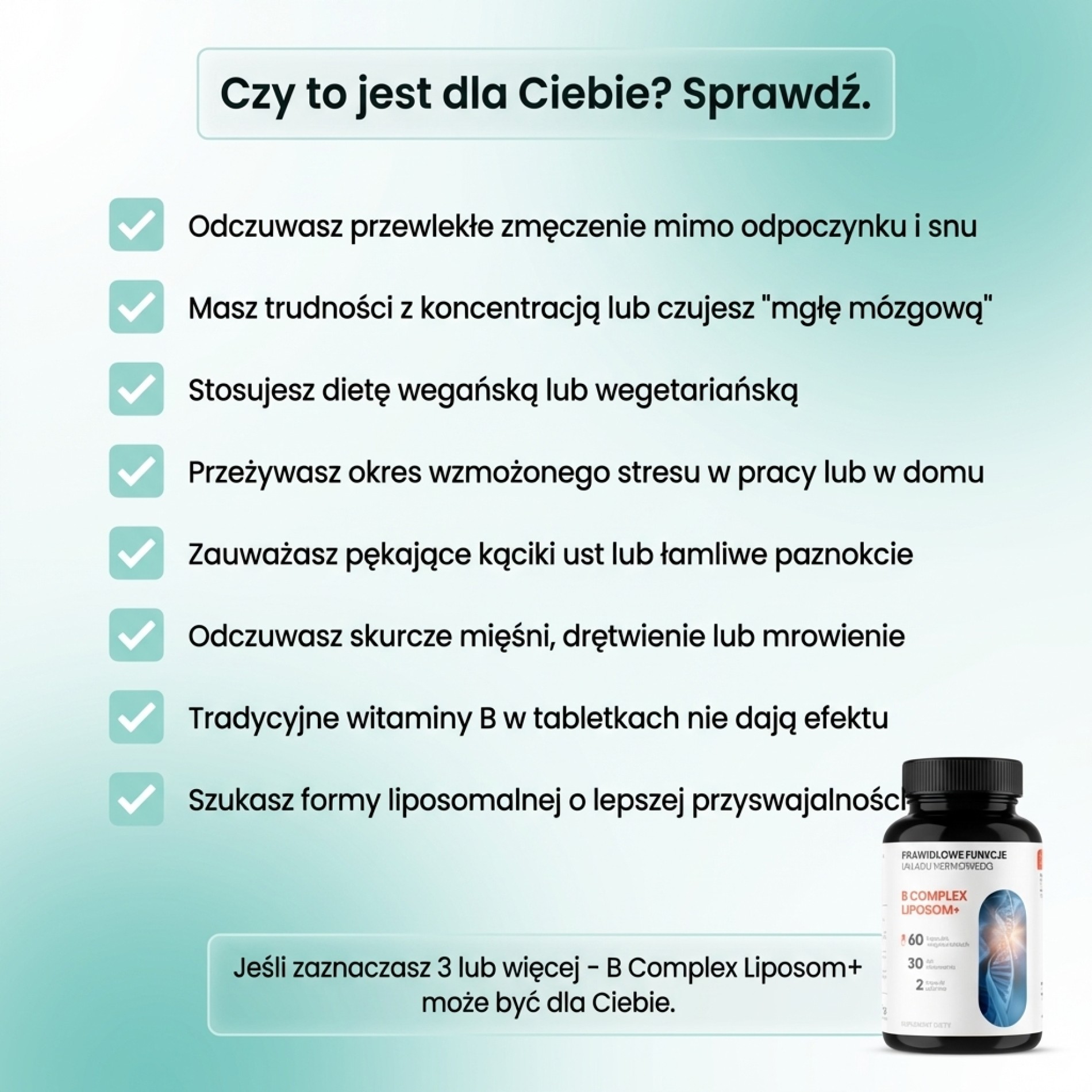 Niedobory witamin z grupy B stanowią jeden z najczęstszych problemów żywieniowych współczesnego społeczeństwa, dotykający szczególnie osoby prowadzące intensywny tryb życia, narażone na stres chroniczny oraz stosujące niezbilansowaną dietę.