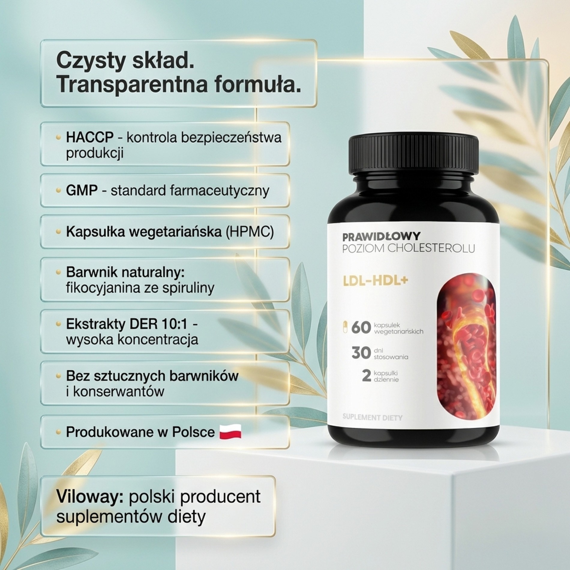 LDL-HDL+ to suplement diety wspierający zdrowie układu krążenia, NIE zastępuje leków przepisanych przez lekarza (statyn). Jeśli przyjmujesz leki na cholesterol, skonsultuj się z lekarzem przed rozpoczęciem suplementacji.
