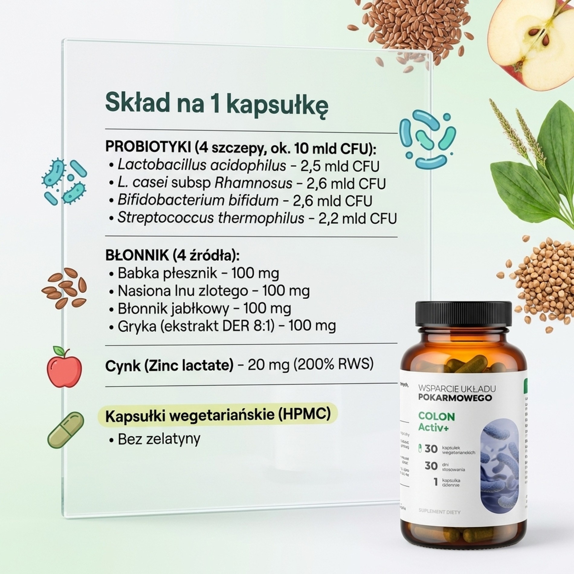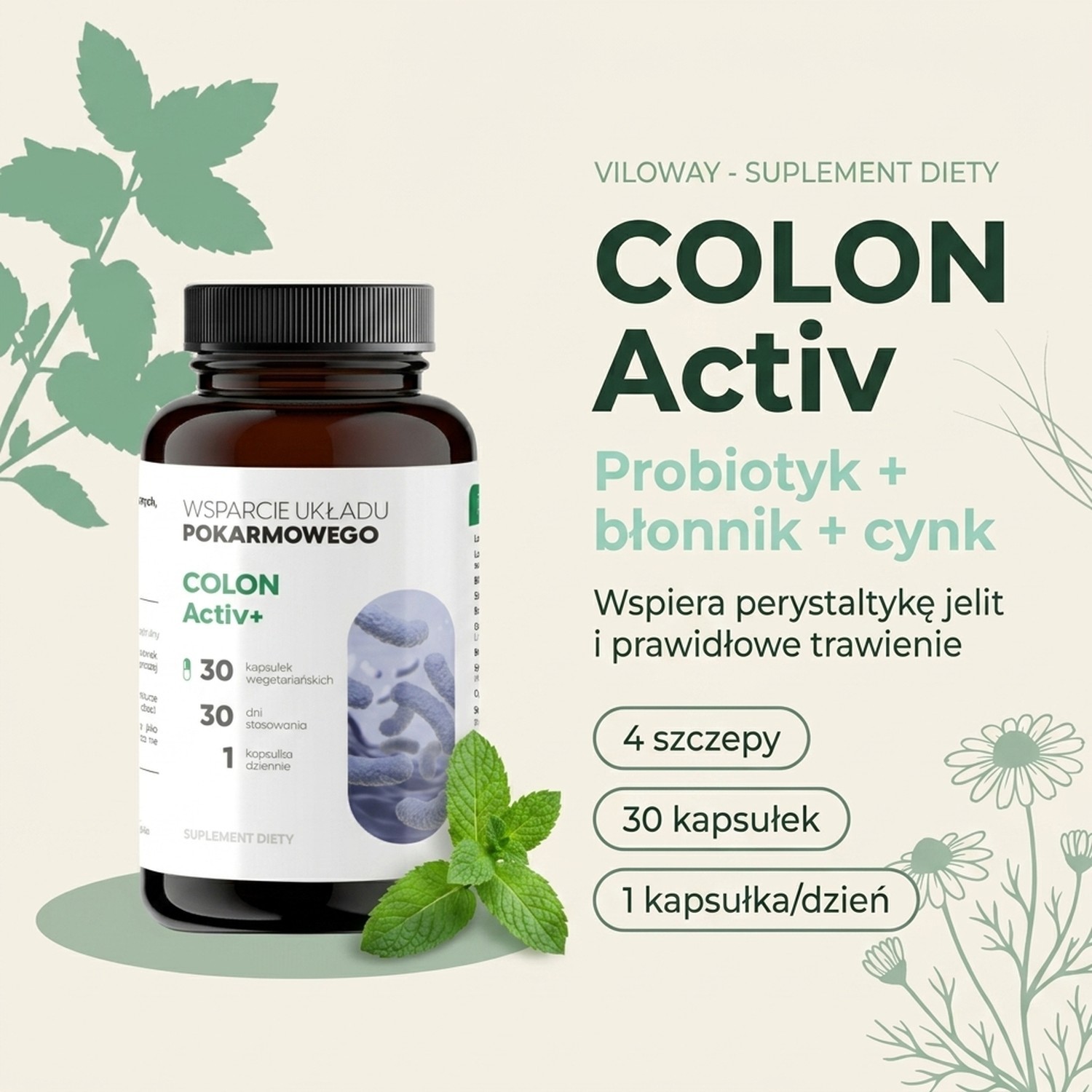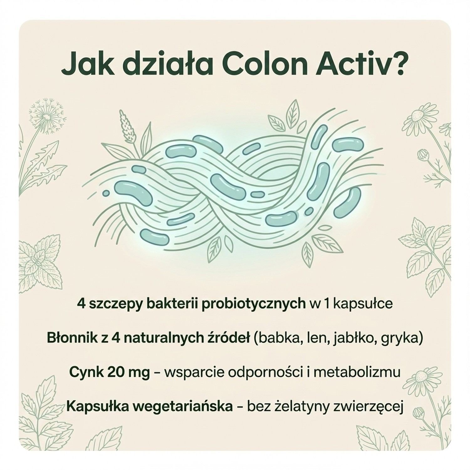 Suplement diety ColonActiv zawierający błonnik pokarmowy (włókno pokarmowe) odgrywa ważną rolę w prawidłowym odżywianiu. Zawiera cztery szczepy bakterii mających korzystny wpływ na układ pokarmowy.
