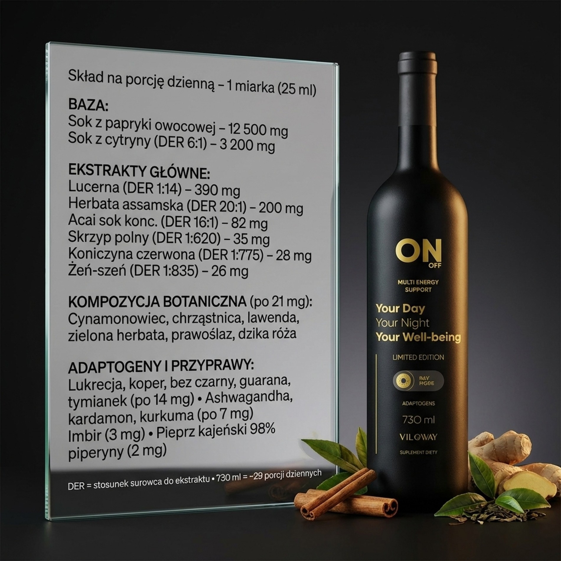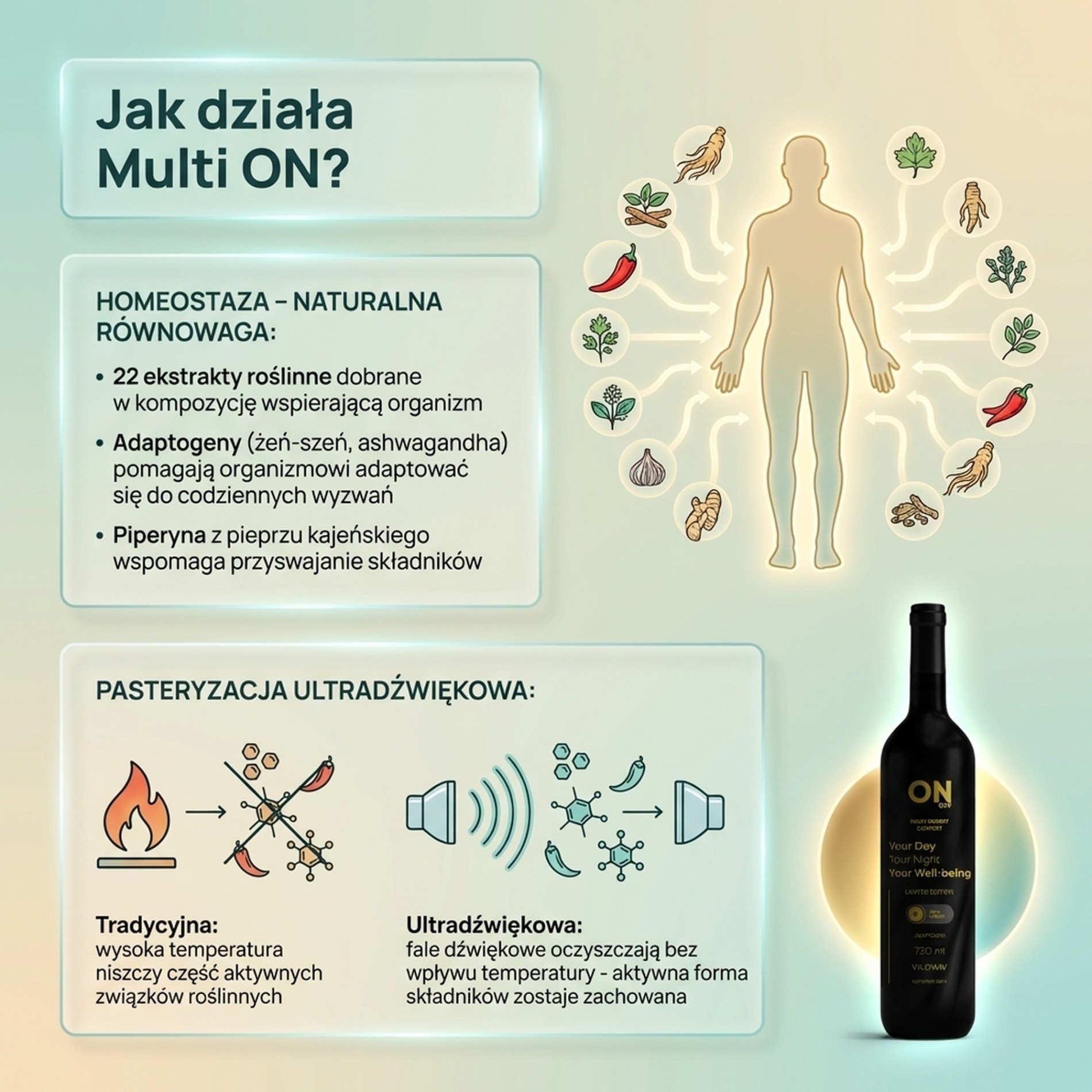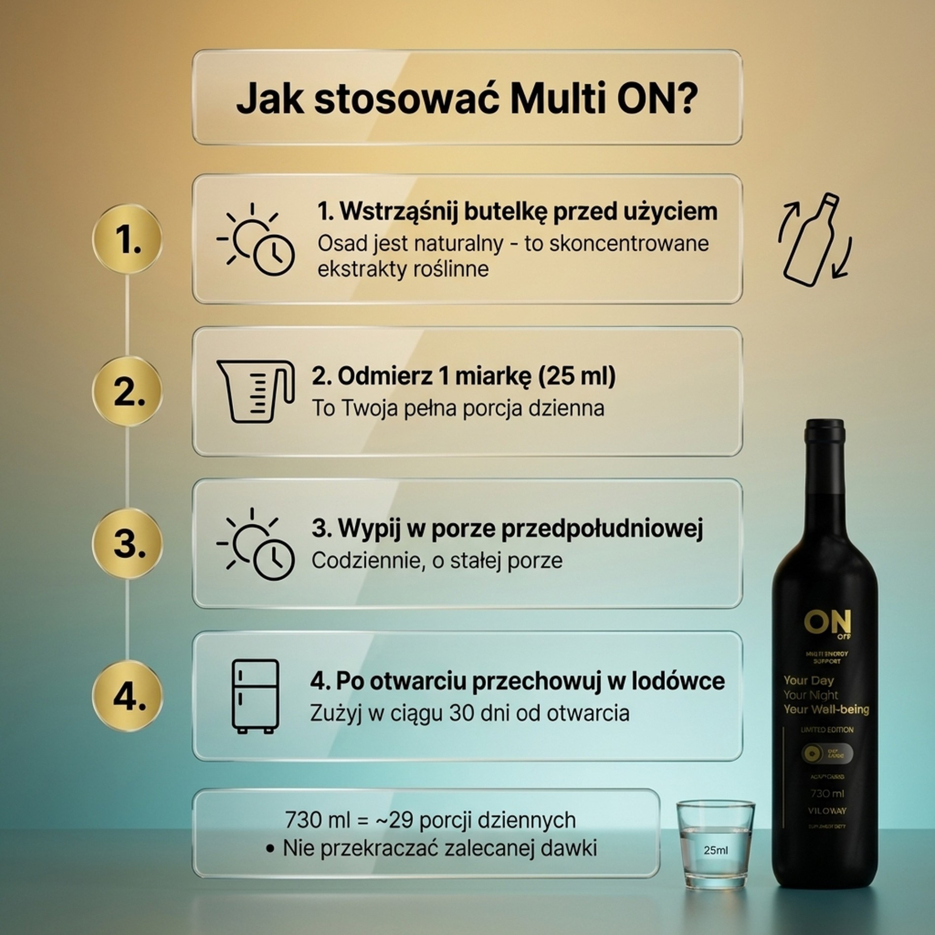 Multi ON - 25 Składników ziołowych na energię i witalność - płyn