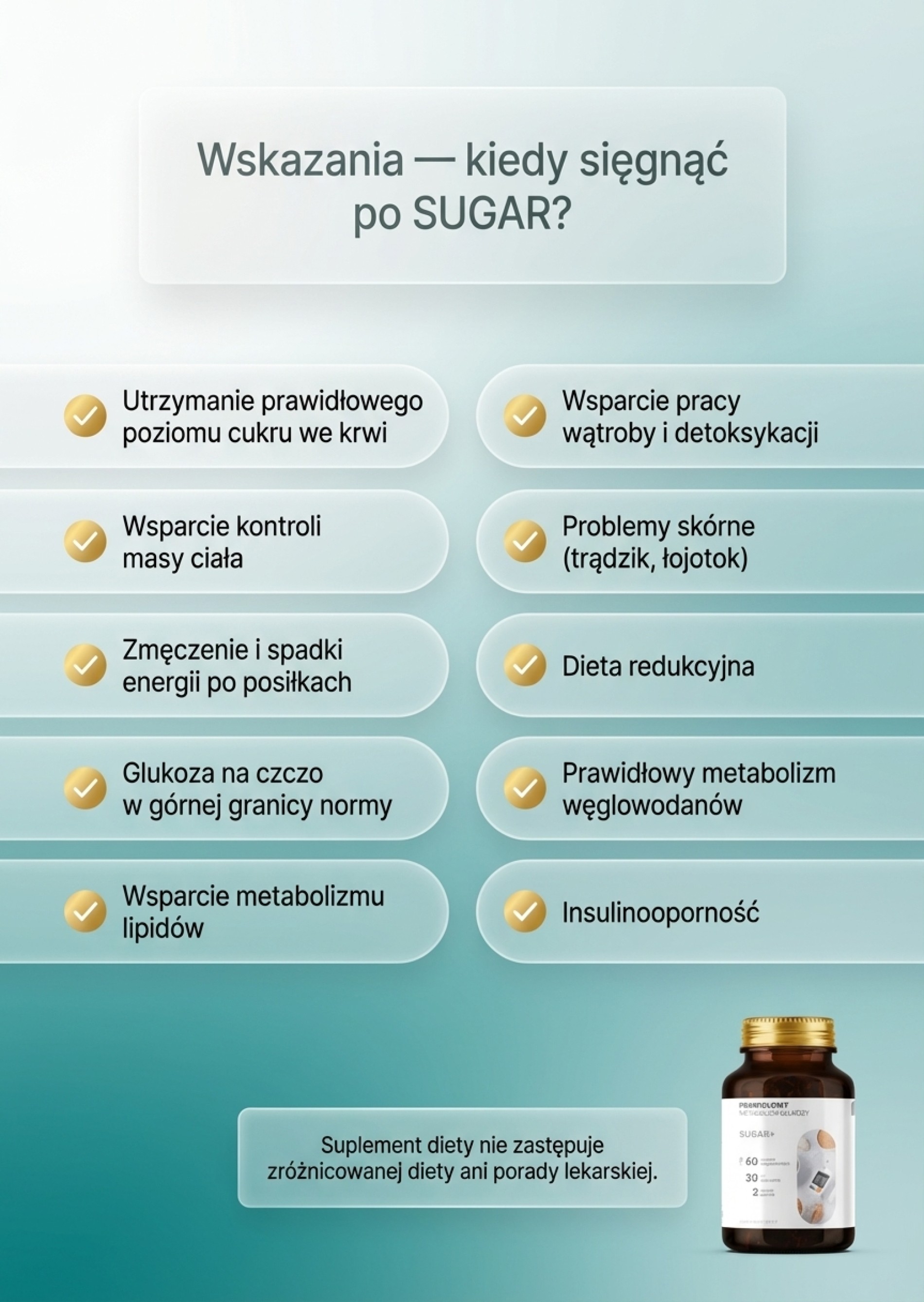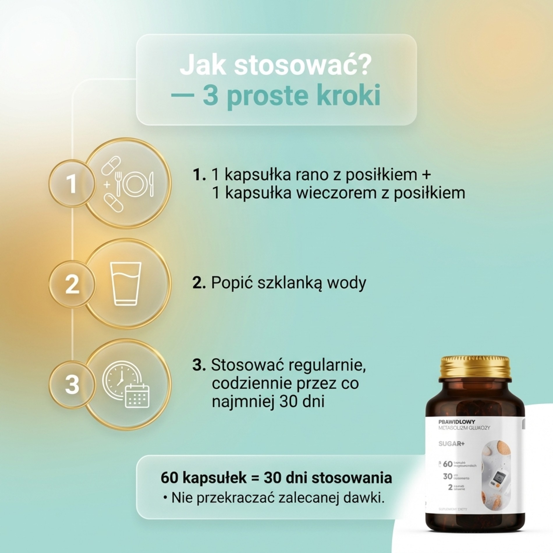 Naszym zdaniem walka z cukrzycą to jedna z najważniejszych misji naszego zespołu. Cukrzyca jest jedną z najbardziej niebezpiecznych chorób na świecie. To cichy zabójca. Walka z nieprawidłowym metabolizmem glukozy w Cukrzycy typu II połączona z prawidłową dietą i aktywnością fizyczną to niezbędny element powrotu do zdrowia i uniknięcia groźnych dla życia powikłań cukrzycowych, w tym zawału serca i niewydolności nerek. Nie bez powodu skład tej mieszanki jest bardzo skomplikowany, a przygotowanie idealnej proporcji zajęło nam wiele miesięcy wytężonej pracy.
