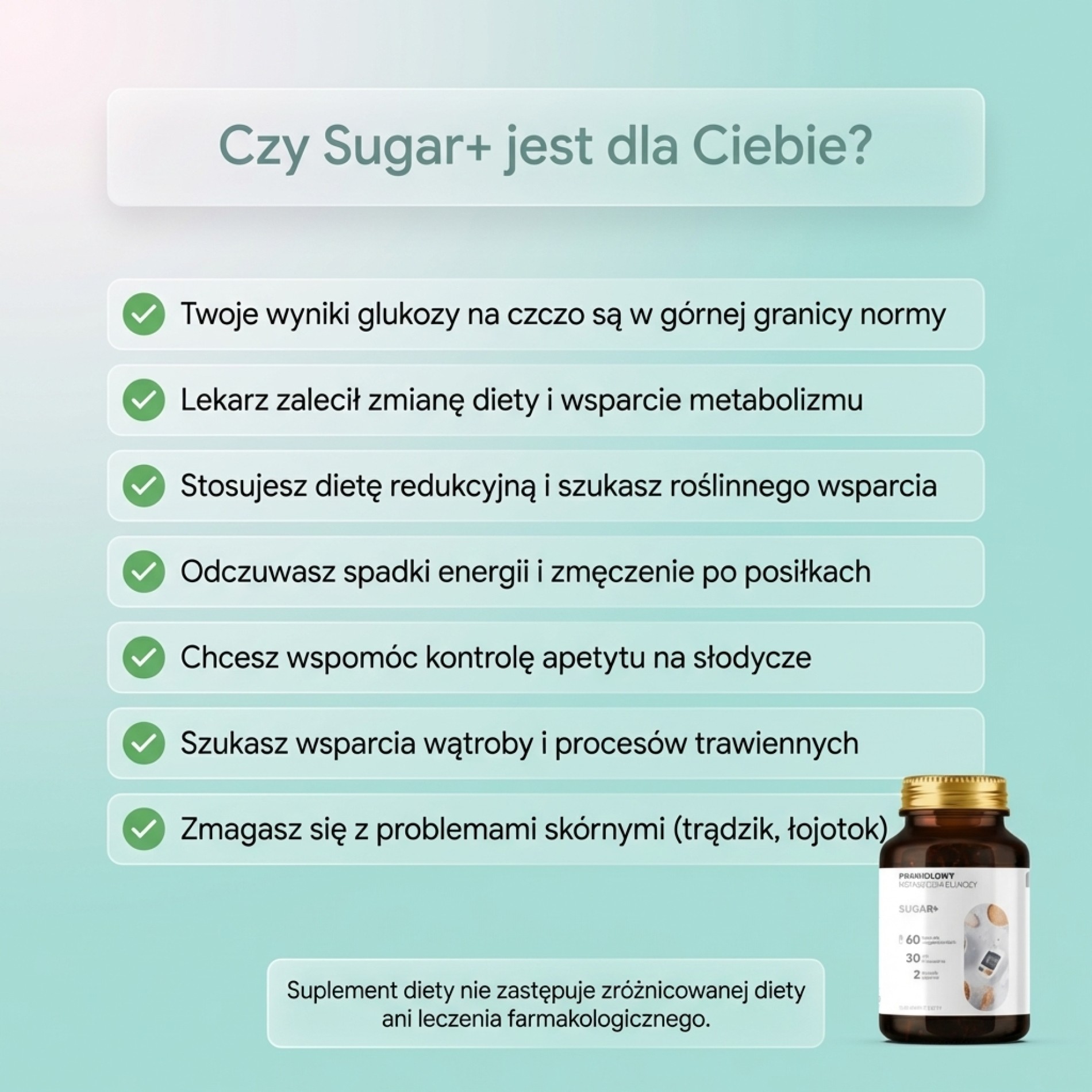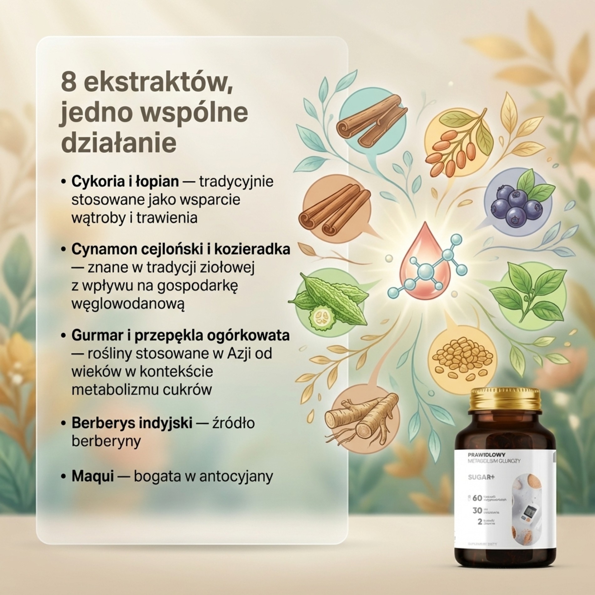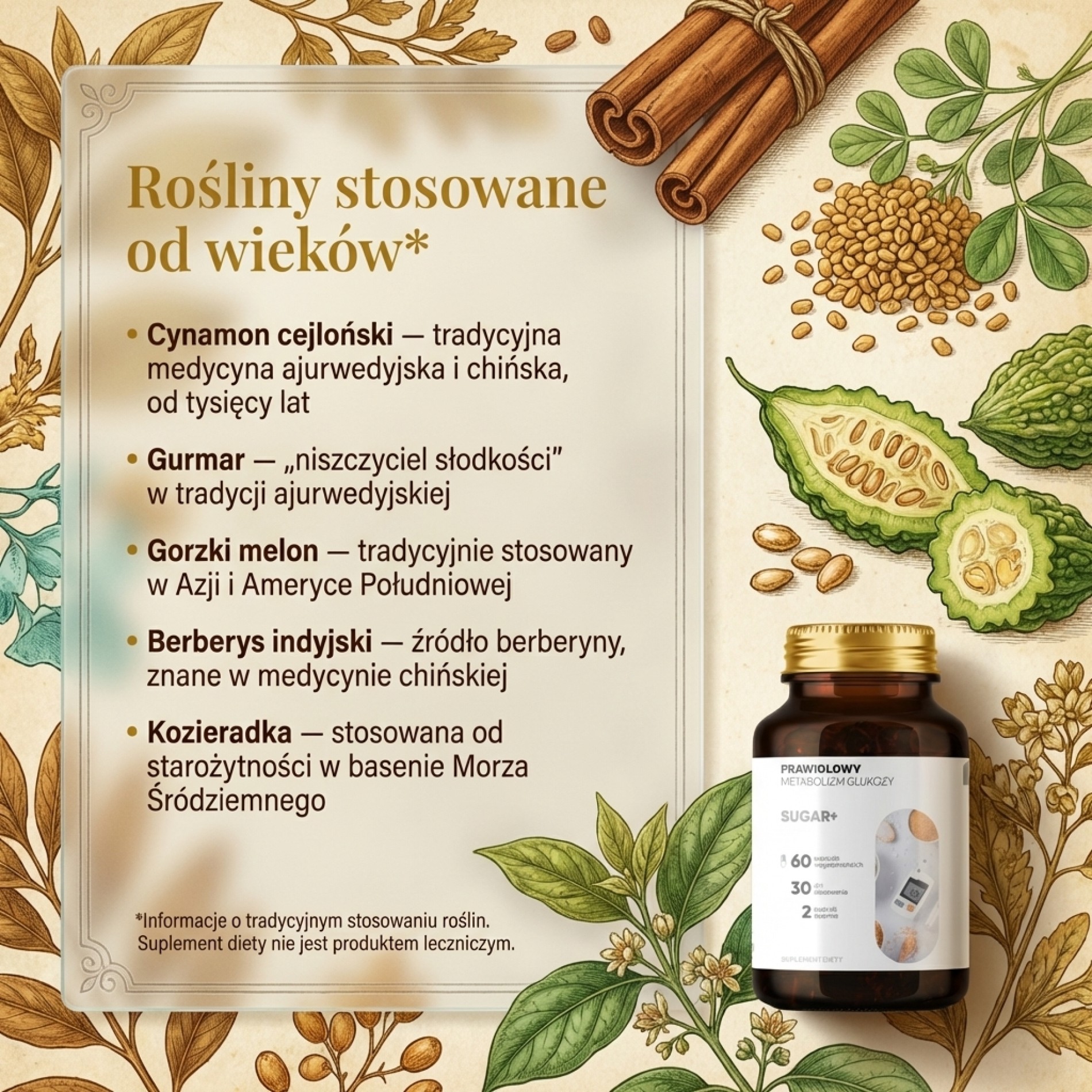 Cukrzyca niszczy organizm na wielu poziomach. Na każdym z poziomów potrzebujesz idealnego wsparcia. Aby powrócić do zdrowia konieczne jest zatem współdziałanie wielu roślin. Jesteśmy dumni, że stworzyliśmy tak niezwykłą suplementację. Pamiętaj, że same zioła nie wystarczą. Potrzebna jest jeszcze Twoja zdrowa dieta, aktywność fizyczna, walka ze stresem i regularny, dobry sen.